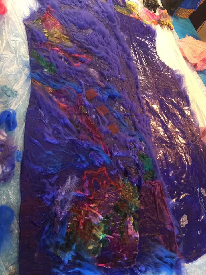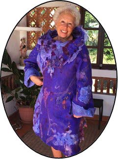 Want to be noticed? Wear one of textile artist Kay Klose’ sensuous nuno felt garments. They are so beautiful yet durable and functional. The sold out Women to Women Fashion Show 2020 will showcase Kay’s new line of original nuno felt women’s clothing. Kay has spent years perfecting her felt cloth from wool: it’s a complicated and fascinating process to sculpt fabric but the result speaks for itself!