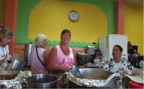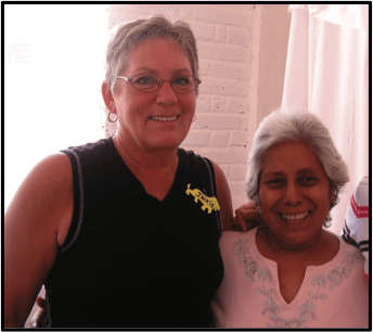 Through the years friendships have formed amongst a dedicated group of volunteers who gather, sort, and set up a temporary clinic to help their Mexican sisters that are breast cancer survivors. At first, a dozen years ago, international women were worried that they wouldn’t be useful because they don’t speak Spanish; but soon the volunteers realized that a hug and a smile said it all. In the lead photos, volunteer Carol is shown ten years apart. In the center is Jackie Jackson, who came up with the idea to provide breast prosthesis and who started the clinic in 1996.