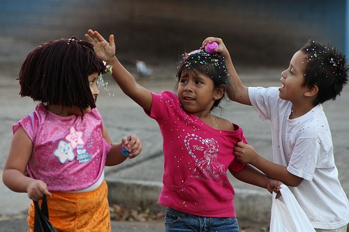 Throughout Mexico cascarones are a staple for family gatherings. The fun is derived from breaking the egg over someone’s head and watching the confetti shower. Some people think that the confetti shower brings good luck and good fortune but for children the pleasure is simply breaking the eggs and enjoying the ensuing flutter of colors.