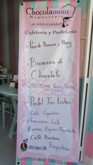 Attention all those that crave sweets: now you can indulge your love of delectable pastry with specialty coffee on your morning walk. Chocolamour Gourmet Pastry Shop, Bahia de Acapolco #3 (just off the avenida in La Penita) opened a couple of weeks ago. This gem of a pastry bistro serves artistic cookies, cupcakes, decorated donuts, giant brownies, cheesecake, and slices of cake besides offering organic breads and rolls. Need a birthday or specialty cake? No problem, just pick your design and call to order and pastry chef Zandra Mera Riofrio will create one for you. (cell 322 168 8006)