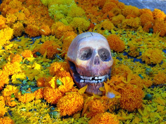 El Día de los Muertos is not, as is commonly thought, a Mexican version of Halloween, though the two holidays do share some traditions, including costumes and parades. On the Day of the Dead, it’s believed that the border between the spirit world and the real world dissolve. During this brief period, the souls of the dead awaken and return to the living world to feast, drink, dance and play music with their loved ones. In turn, the living family members treat the deceased as honored guests in their celebrations, and leave the deceased’s favorite foods and other offerings at gravesites or on the ofrendas built in their homes. Ofrendas can be decorated with candles, bright marigolds called cempasuchil and red cock’s combs alongside food like stacks of tortillas and fruit.