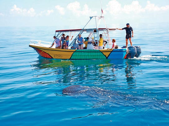 The world’s largest fish, which can reach lengths of 40 feet, is safe to swim alongside. Murals, T-shirts, souvenirs and wooden signs throughout the island beckon people to “Swim with Whale Sharks.”